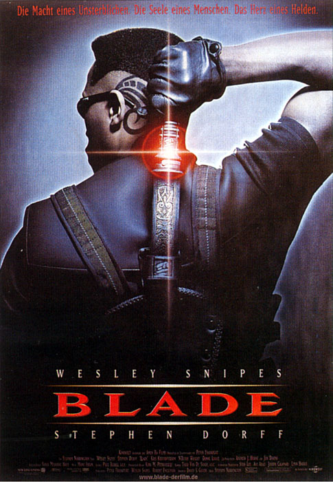 I would be remiss if I did not mention the aesthetic influence of Blade on subsequent action genre films. In the US there hadn’t really been horror action films that incorporated martial arts, black leather, and Black people. Snipes was unlike his colleagues. Muscular but not body-builder-big like Stallone or Schwarzenegger, snarky like Willis but less scrappy, and graceful. This set the tone for genre action films to come. Our heroes no longer needed to be bulky, in fact, sleek was welcomed alongside vulnerable and even, romantic. Our appetite changed and this gave way to exciting franchises and solidified genre action films as a successful and sought-after form of storytelling, not to mention paving the way for the supernova success of Marvel movies in the decades to come.