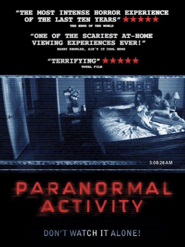 Paranormal Activity directed and written by Oren Pelli follows a couple, Micah, (Micah Sloat) and Katie, (Katie Featherson) as they document unsettling supernatural occurrences in their home using surveillance cameras, only to discover that the malevolent forces they capture on film are more insidious and personal than they could have ever imagined. The found footage movie unfolds in the domestic space, responding to the post-9/11 anxieties permeating the societal landscape. Set in a home equipped with security cameras, the film introduces a sense of security through modern surveillance technology.