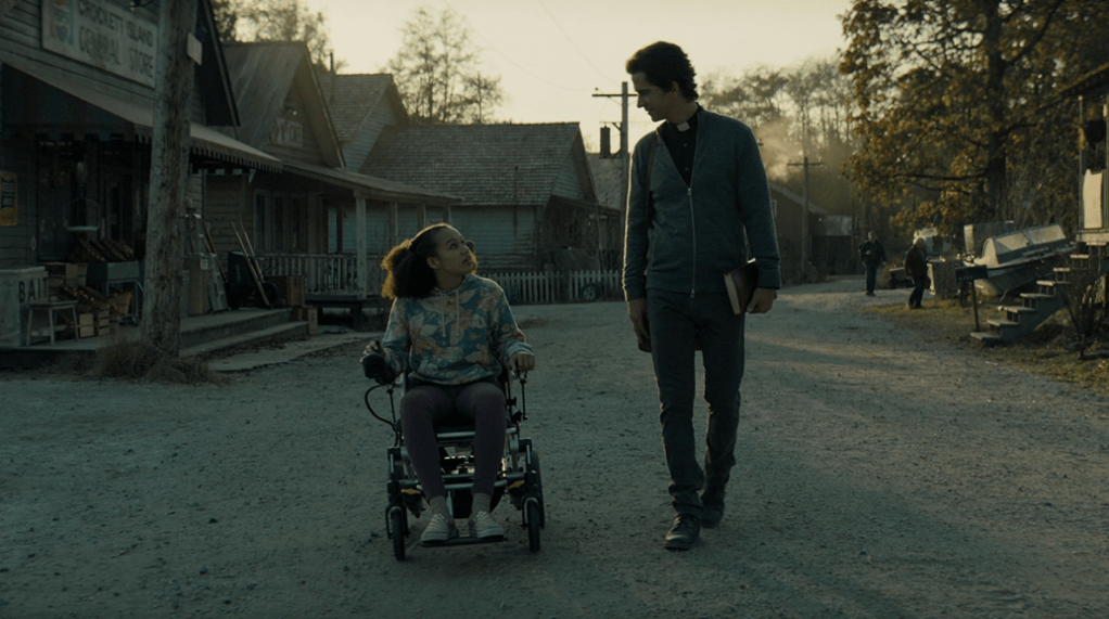 But Flanagan doesn’t let Leeza’s recovery stay within the trope territory. The series ends with her being one of the lone survivors of the battle between the believers and non-believers, rowing off the island and commenting to her companion (another teenager in the town and bother to Riley, Warren) about the returning paralysis to her legs. Her cure wasn’t only a temporary sham but had the power to turn those who were given the blood after dying into vampires, essentially. There is a hopeful future for Leeza, even if she will need a wheelchair.