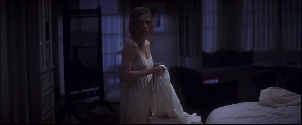 Twenty years after The Shining, in-between shooting Cast Away and waiting for Tom Hanks to lose weight while growing a Jesus (or Forrest Gump) sized beard, director Robert Zemeckis made What Lies Beneath. Two films serving as different ways to evoke a sense of craft and magic behind the camera. The other nexus is Michelle Pfeiffer, as Claire Spencer, the housewife to Harrison Ford’s Dr. Norman Spencer (a successful scientist and professor). Unlike the wide expanses of The Overlook, that on first look breed a foreboding sense of doom, Claire and Norman live a quaint, upper-middle class life on a lakeside home in Vermont. As Claire’s daughter is sent off to college so begins her what-do-I-do-around-the-house-now period.