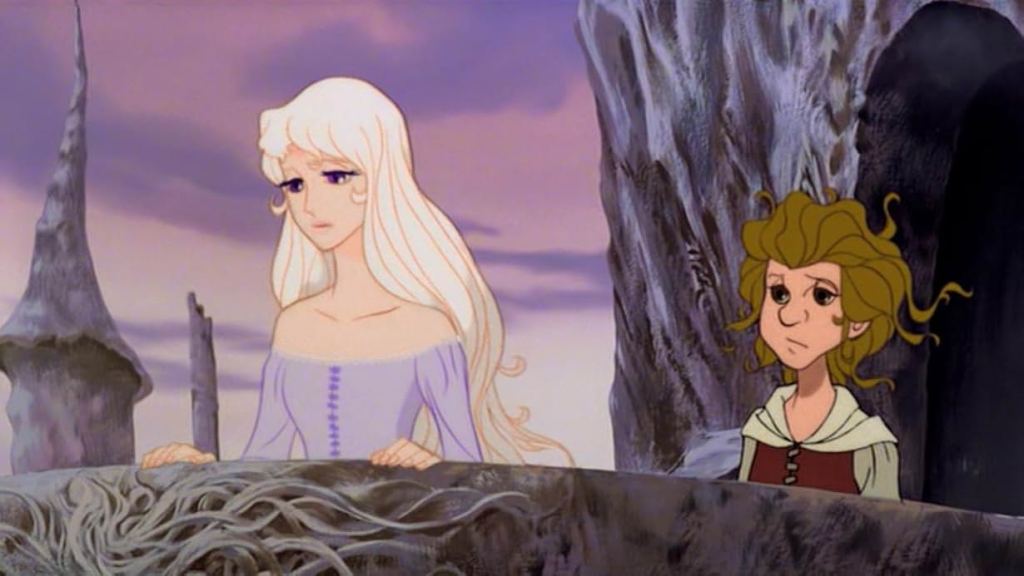 In their long and tedious journey, they finally encounter the dreaded Red Bull who seems to be stalking her – knowing she is the last. In a harrowing and desperate attempt to save The Unicorn from its grasp, Schmendrick uses his unpredictable magic to transform her into a human woman. Although it’s spared her life, the transformation fills The Unicorn with grief and despair as she feels her true self slipping away, faster and faster. Trapped in a mortal body, she experiences human emotions like fear, love as she falls in love with Haggard’s son, Prince Lir (Jeff Bridges), and sorrow for the first time, leaving her torn between her immortal identity and the fragility of her new form. Her desperation grows as she realizes she is losing not only her immortality but also her very sense of self.