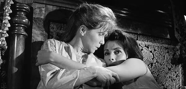 The Haunting (1963), based on Shirley Jackson’s The Haunting of Hill House, follows Dr. Markaway as he hires two women to help him study the paranormal phenomena within the house. Dr. Markaway deliberately picks two women for his fringe science experiment, perhaps knowing he’ll have their buy-in, whereas the only other man (the house’s heir) remains a skeptic. Theodora (“Theo”) is a practicing psychic and Nell had paranormal experiences as a child. The supernatural has distinct queer undertones in this film as the woman better-versed in paranormal activity is also more aware of her sexuality. The two women are both mediums to an extent, though they could not be more different – even wearing opposing colors in each scene. After caring for her invalid mother up until her death, Nell is unmarried and grieving. Theo is also unmarried, though because she loves someone she cannot marry (read: a woman). While they both have psychic tendencies, Theo’s confidence opposes Nell’s uncertainty in her psychic ability, emotional control, and in her sexual orientation. Nell is the passive receptor of ghost phenomena, consequently completely out of control of her paranormal experiences and also completely out of control of her emotions. She spends most of the film wailing and flailing, etc. Theo, on the other hand, is in control of her power. She is poised, reserved, and even while she’s scared she does not make a fuss. She’s aware of her ability, whereas when Nell is faced with it, she runs (literally out of the house).
