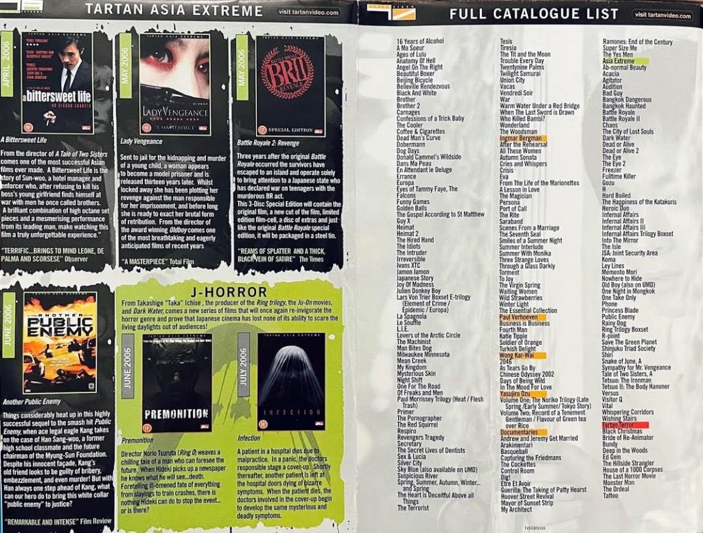 For many Western fans coming off The Ring and The Grudge, the real gateway into Asian horror was a logo: Tartan Video’s black-and-yellow “Asia Extreme.” Between Nakata’s Ring and Takashi Miike’s Audition, the UK distributor built a brand synonymous with rebellious danger—a dubious promise that anything stamped “Asia Extreme” would deliver “cultural hand grenades” beyond Western norms. Paired with Media Blasters’ U.S. “Tokyo Shock” label, it’s no surprise that fan forums and horror outlets (Buscher, Fangoria) still circulate the urban legend that these distributors allegedly invented the phrase “J-Horror.”