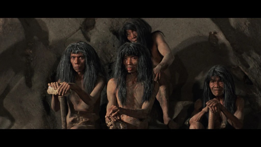 After Robert has raped Pulan (and, problematically, formed a sort of romantic relationship with her) and she has guided him back to the airstrip, the tribe kills Pulan just as Robert is about to escape with her. Robert watches as the tribe consumes Pulan, set to a soft and beautiful score in an ironic stylistic choice that Deodato would become known for later with Cannibal Holocaust. The ritual in which Pulan is prepared and consumed is almost depicted with a sense of beauty, similar to the sense of beauty the expansive jungle, with all its dangerous tribes and wildlife, is depicted with as Robert journeys through it. On a more obvious level, there is the Orientalist “beauty of the unknown”, but on a subconscious level, the beauty of Pulan’s consumption comes from robbing Robert of his “War Bride”. Throughout the film, Robert is only allowed victories that dehumanize him. To escape with Pulan would be a colonialist victory, one that the tribe doesn’t allow, contributing to the film’s throughline of disempowering the colonizer as punishment for his crimes.