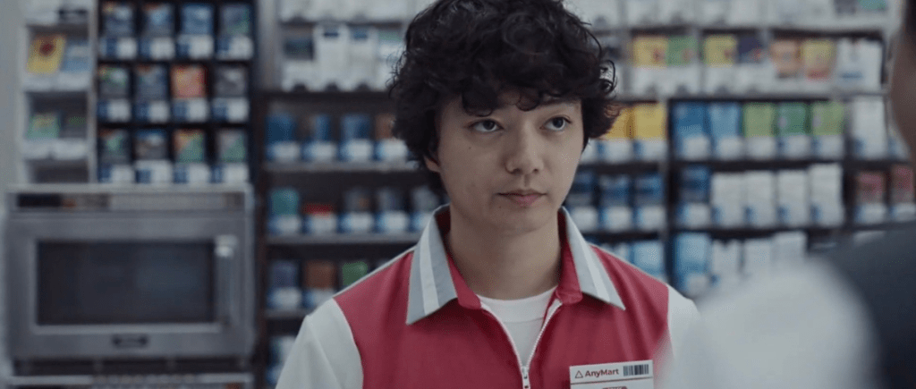 Sakai is the assistant manager at a convenience store; his working days are determined by routine. Without any hint of emotion, he deflects the annoying customers and follows the rigid rules that the store owner imposes on the staff. When the ambitious Ogawa is employed part-time, Sakai increasingly begins to question his role in the system. The monotonous world of the AnyMart gradually unravels until the boundary between life and death eventually becomes dissolved by the ghosts called forth by consumerism. Carried by current young Nippon stars, this feature debut by commercial filmmaker Yusuke Iwasaki, himself a son of a long-term store owner, uses a crazy mix of off-beat horror, socially critical drama, and absurd comedy to hone in on fears about work as well as the feelings of powerlessness towards society, with which the younger generations increasingly see themselves confronted. In the midst of a sea of power lines and grey apartment complexes, the convenience store becomes a heterotopia. Is there still hope in the cold world of late capitalism, or must we eternally haunt the sterile aisles of the AnyMart, like chickens packed in plastic?