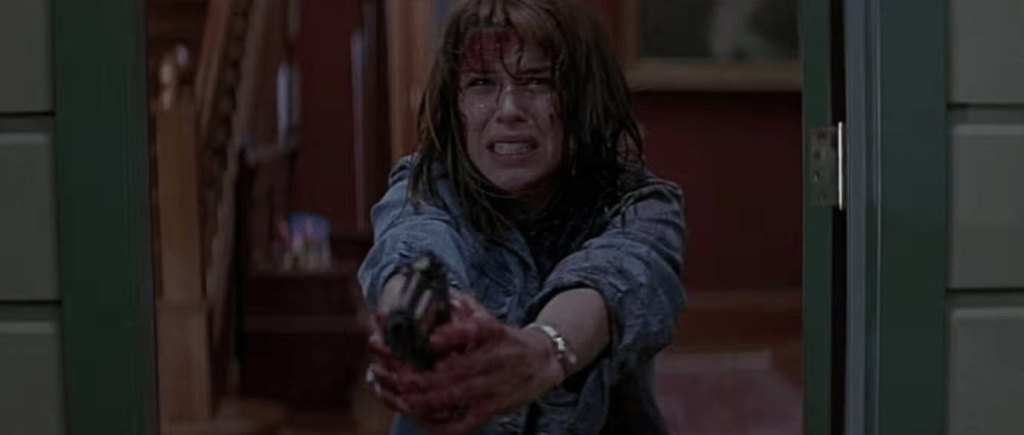 The evils of pop culture and stylised violence, which Scream itself is a fine example of, are continually lampooned, culminating with Billy Loomis’s memorable line…. “Don’t blame the movies, movies don’t create psychos, movies make psychos more creative.” Scream laughs at blame and then dodges accountability with the same breath.